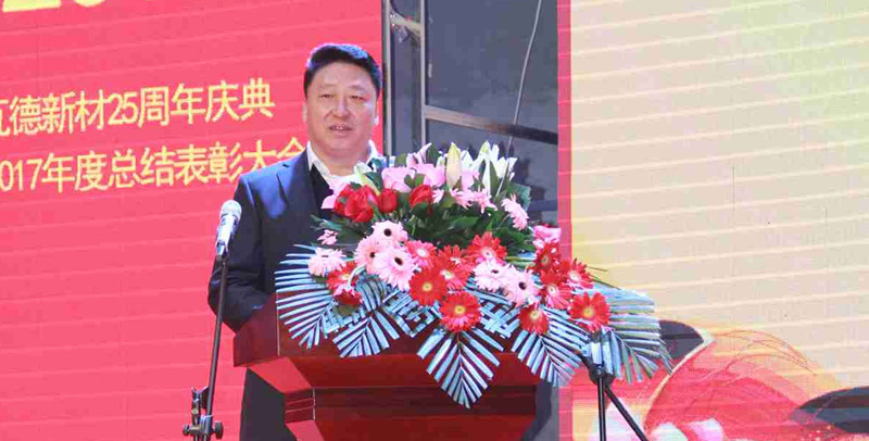 總結(jié)表彰大會由熱鬧的開場舞《開門紅》拉開序幕。集團(tuán)董事長謝富強(qiáng)做了主題為《感恩 共享 發(fā)展》的主題致辭。致辭中,對于瓦德新材25年來發(fā)展的歷史做了回顧,并且表示“瓦德新材這25年,是感恩改革開放這個偉大時(shí)代的25年;是追隨、踐行、見證開放改革的25年;是秉持“務(wù)實(shí)求真、創(chuàng)新求變”的發(fā)展理念,艱苦拼搏,執(zhí)著前行的25年;是發(fā)揚(yáng)工匠精神,專心、專注成長的25年;是瓦德新材人同舟共濟(jì)、共克時(shí)艱、頑強(qiáng)成長的25年。一路走來,我們感謝在瓦德新材成長道路上所有關(guān)心、支持、幫助我們的各級地方政府和我們的廣大客戶、供應(yīng)商和渠道商及各合作伙伴。在這里要特別感謝的是因?yàn)橛懈魑痪ぞI(yè)業(yè)的員工的不離不棄的鼎力相助,才有了瓦德新材成功發(fā)展的今天。”